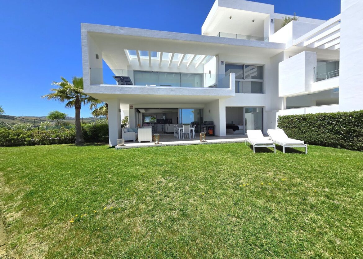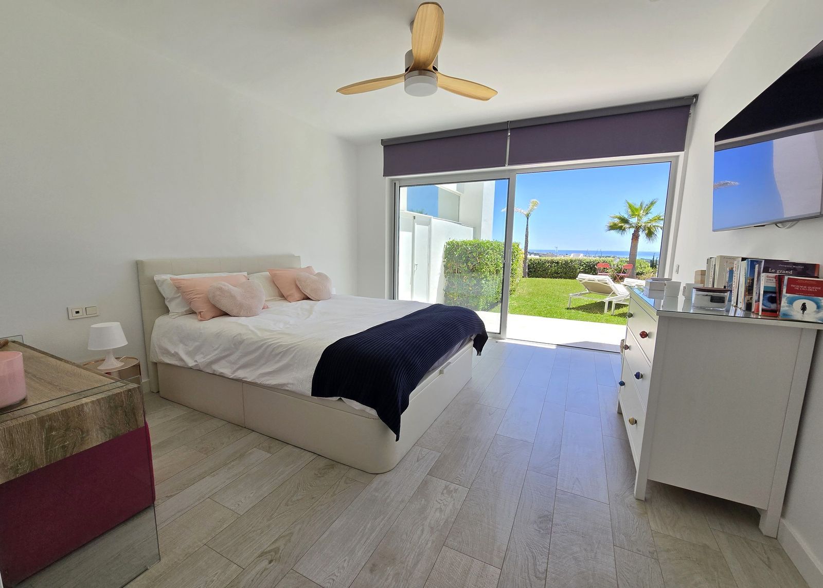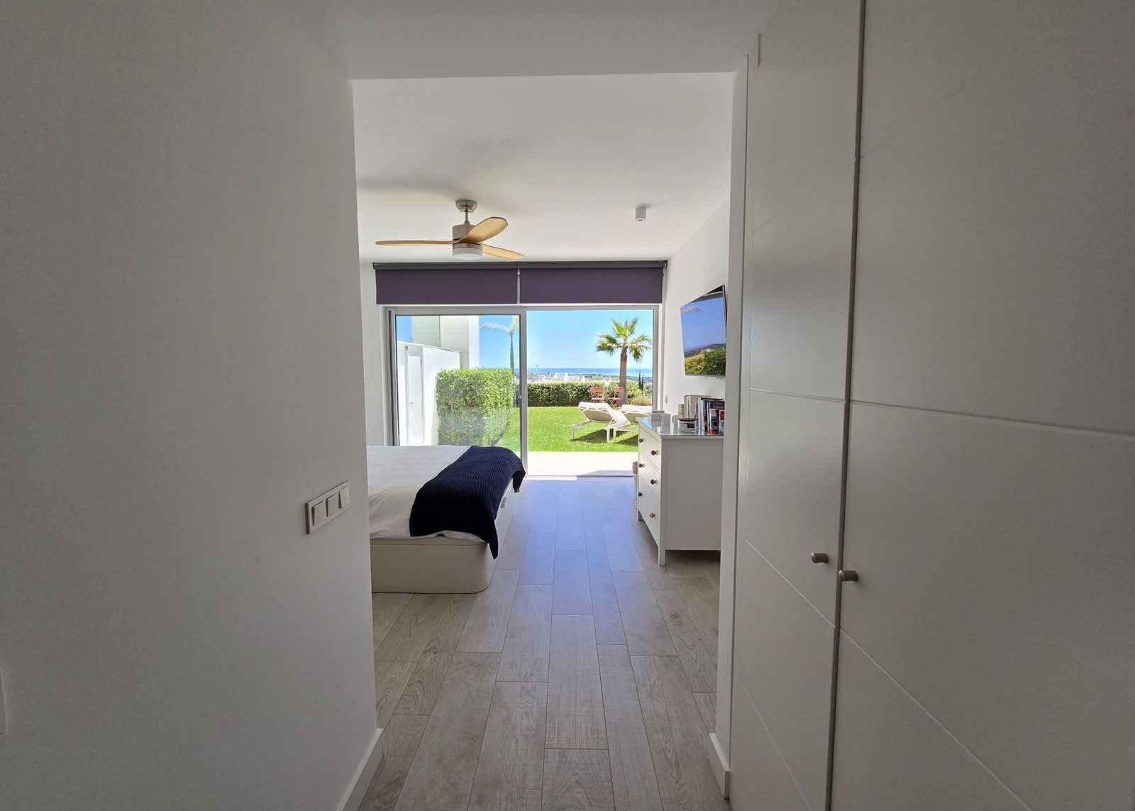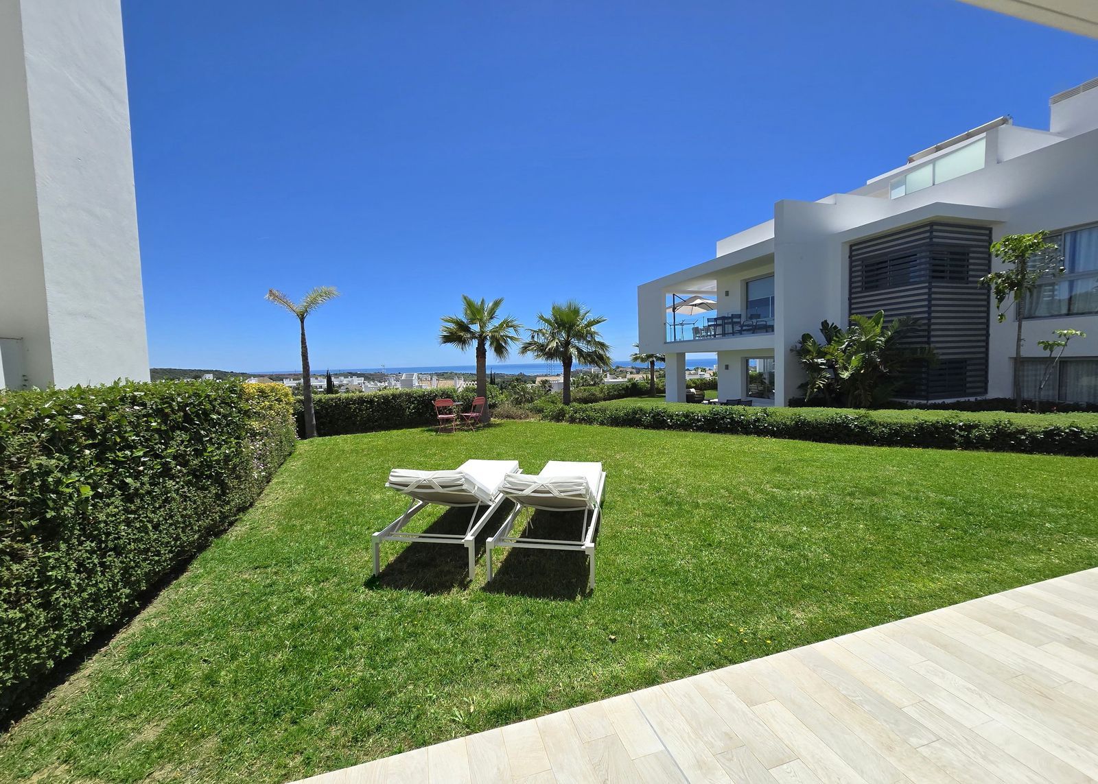 IMAGINE A PRIVATE TURQUOISE LAGOON OF CRYSTAL WATERS at your apartment’s door step… This could be your apartment at Alcazaba Lagoon, the residential development of your dreams. This wonderful 2 bedroom corner garden apartment is located in the best block in the complex boasting panoramic views to the lush garden as far as the sea. This apartments offer a very large outdoor space including a great terrace and big private use garden which is ideal for outdoor living. The property is flooded with natural light, thanks to expansive windows and its corner aspect, the open-plan living room is spacious and extends to a large terrace that seamlessly integrates into the living area. Armerican style fully equipped kitchen with large central island. All bedrooms are generously sized, particularly the master suite with walking closet and beautiful en-suite bathroom . The apartment benefits from its corner position, providing maximum privacy and offering a truly exceptional residential experience. The property includes a separate storage room and an underground garage for 1 car and 1 golf buggy.