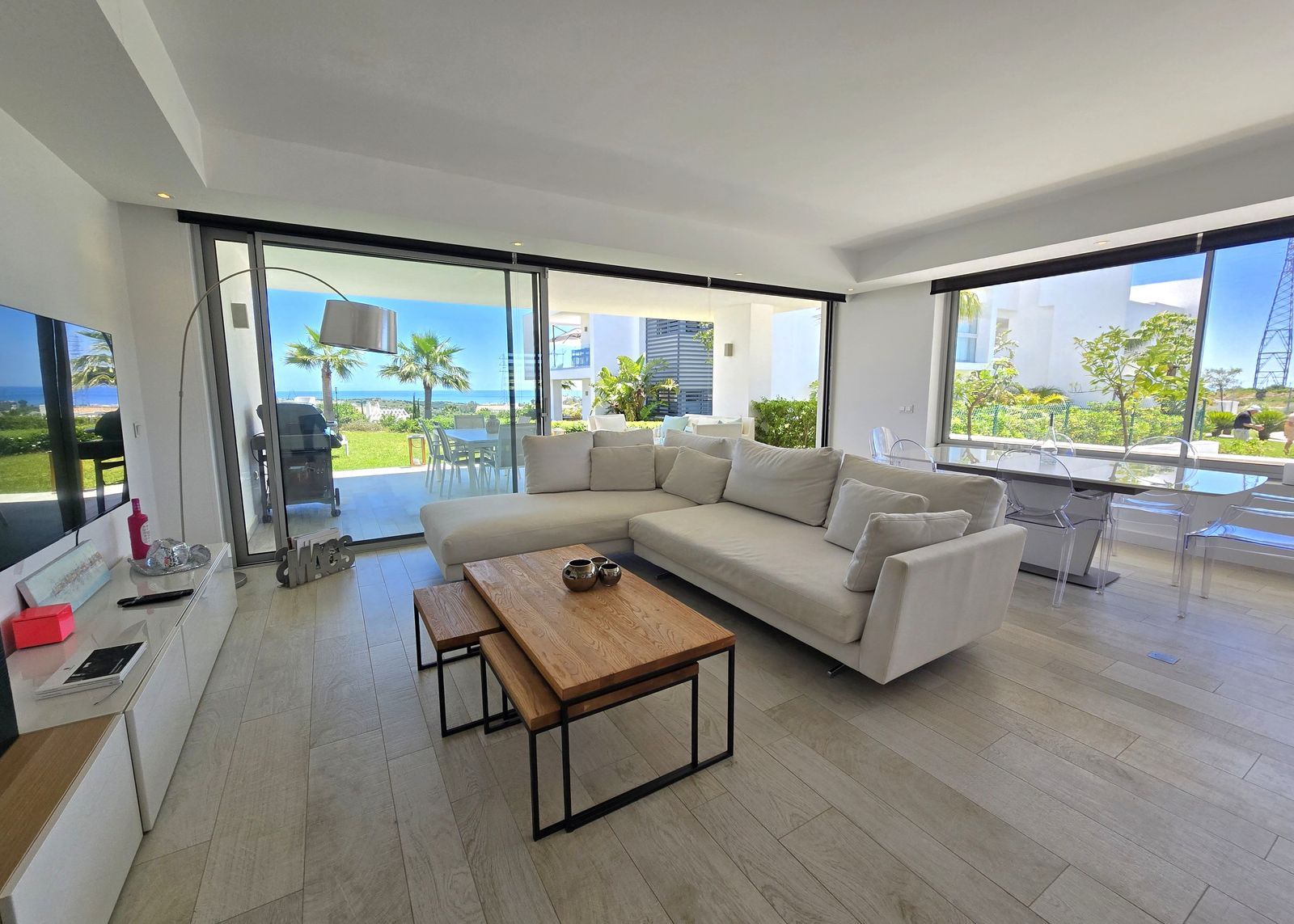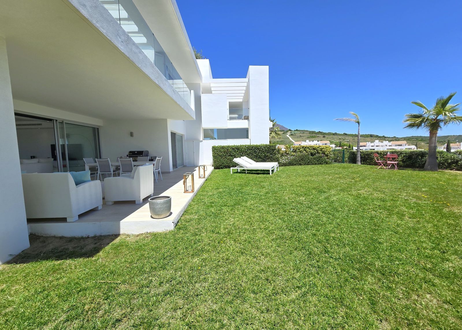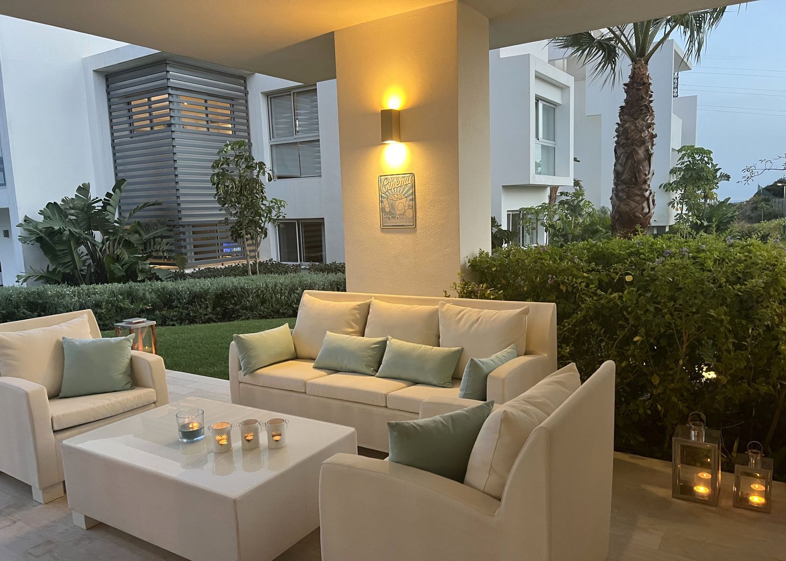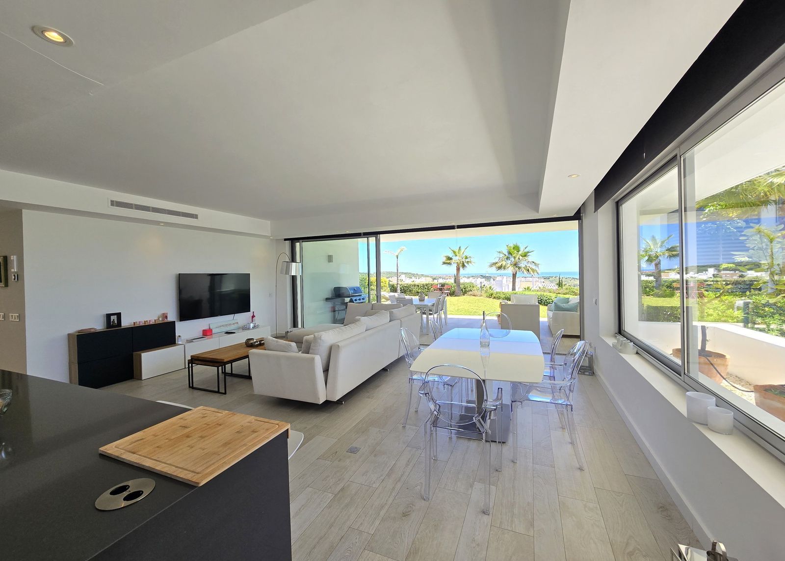 IMAGINE A PRIVATE TURQUOISE LAGOON OF CRYSTAL WATERS at your apartment’s door step… This could be your apartment at Alcazaba Lagoon, the residential development of your dreams. This wonderful 2 bedroom corner garden apartment is located in the best block in the complex boasting panoramic views to the lush garden as far as the sea. This apartments offer a very large outdoor space including a great terrace and big private use garden which is ideal for outdoor living. The property is flooded with natural light, thanks to expansive windows and its corner aspect, the open-plan living room is spacious and extends to a large terrace that seamlessly integrates into the living area. Armerican style fully equipped kitchen with large central island. All bedrooms are generously sized, particularly the master suite with walking closet and beautiful en-suite bathroom . The apartment benefits from its corner position, providing maximum privacy and offering a truly exceptional residential experience. The property includes a separate storage room and an underground garage for 1 car and 1 golf buggy.