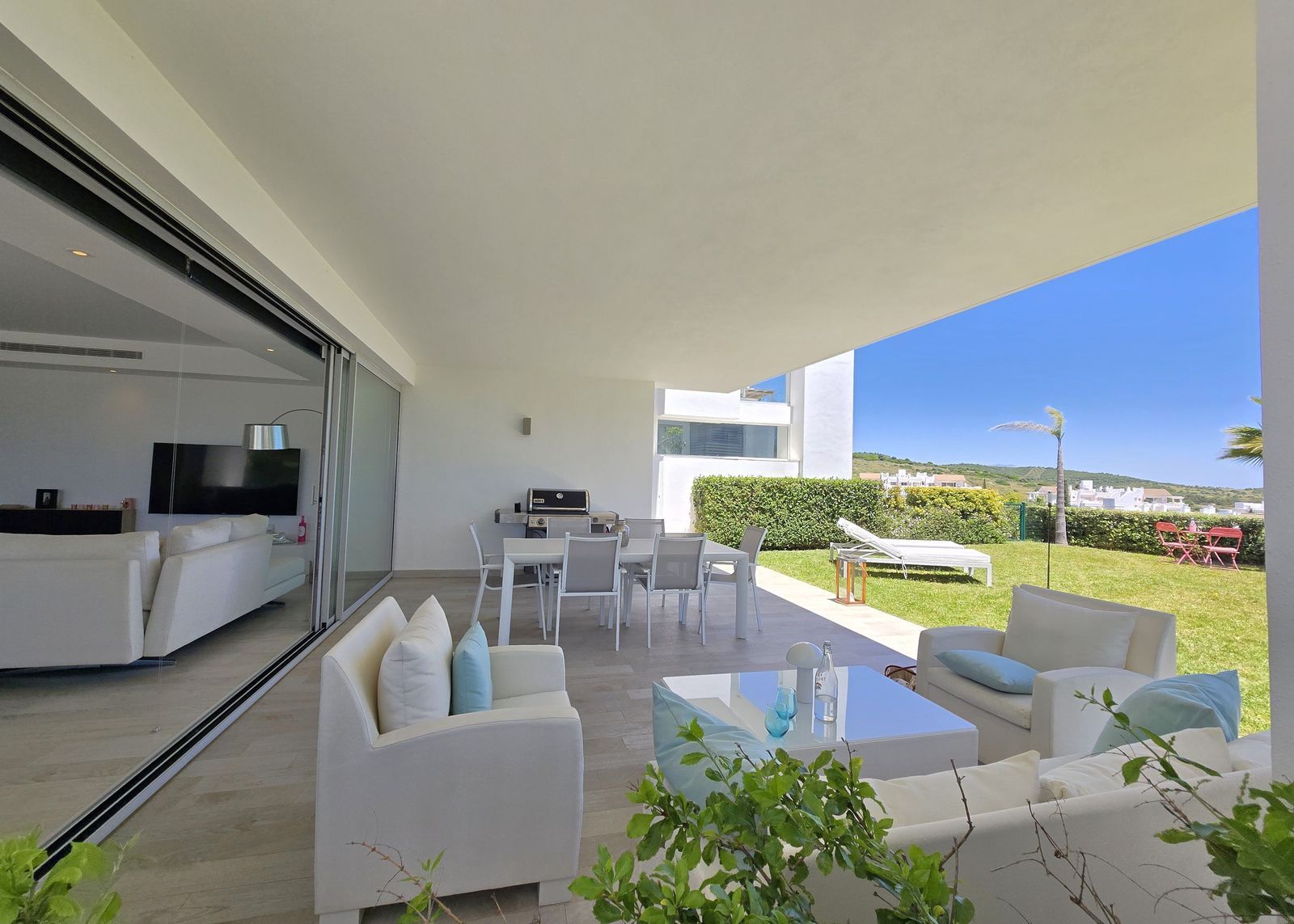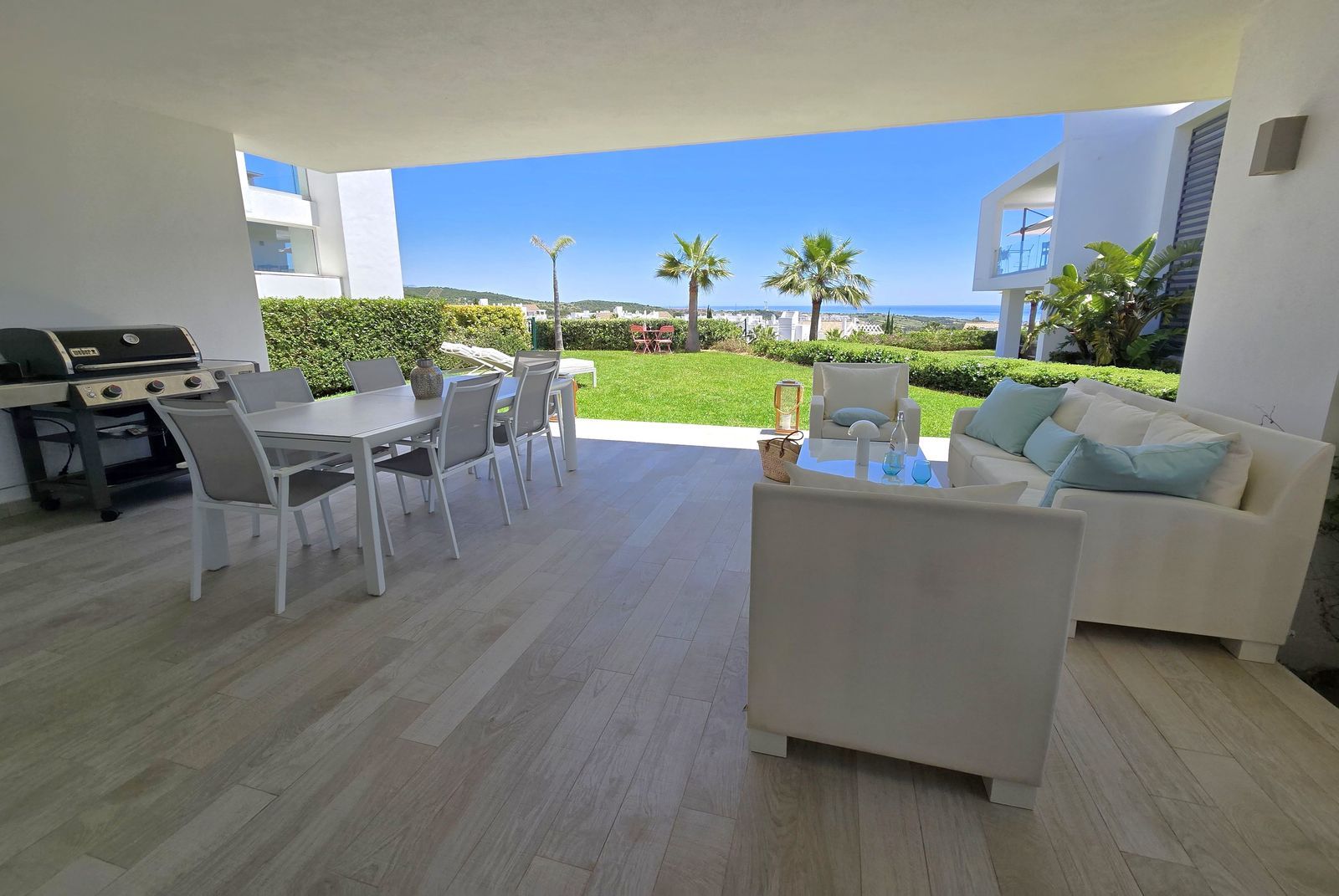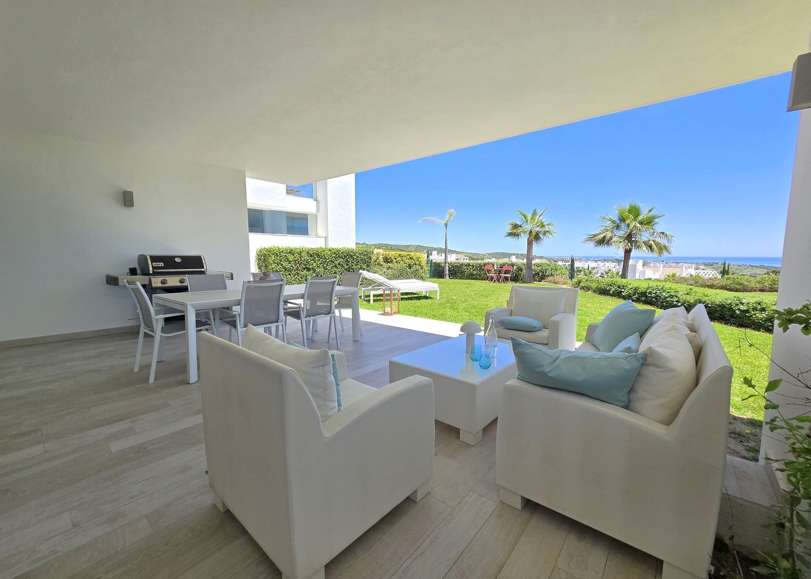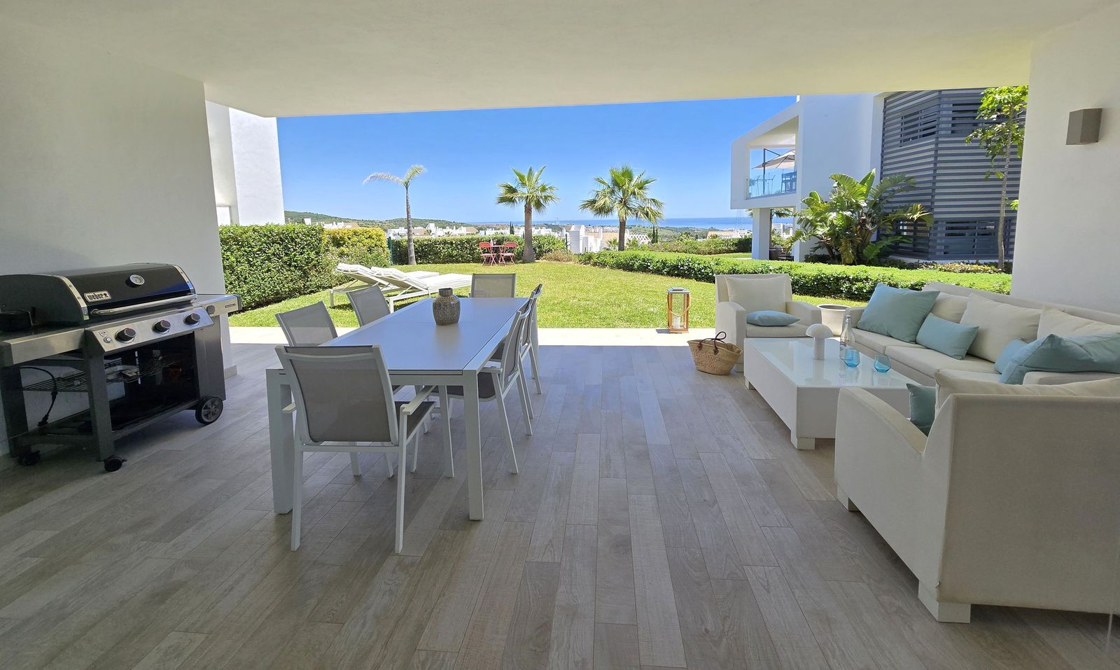 IMAGINE A PRIVATE TURQUOISE LAGOON OF CRYSTAL WATERS at your apartment’s door step… This could be your apartment at Alcazaba Lagoon, the residential development of your dreams. This wonderful 2 bedroom corner garden apartment is located in the best block in the complex boasting panoramic views to the lush garden as far as the sea. This apartments offer a very large outdoor space including a great terrace and big private use garden which is ideal for outdoor living. The property is flooded with natural light, thanks to expansive windows and its corner aspect, the open-plan living room is spacious and extends to a large terrace that seamlessly integrates into the living area. Armerican style fully equipped kitchen with large central island. All bedrooms are generously sized, particularly the master suite with walking closet and beautiful en-suite bathroom . The apartment benefits from its corner position, providing maximum privacy and offering a truly exceptional residential experience. The property includes a separate storage room and an underground garage for 1 car and 1 golf buggy.